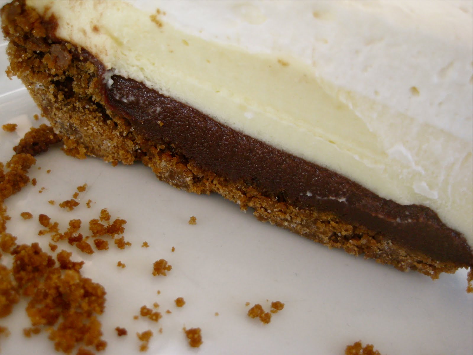-You will have four layers when finished. Crust, chocolate mixture, custard mixture, whipping cream.