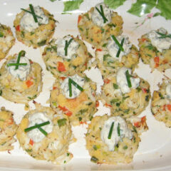 My dear friend Diane made these scrumptious (don’t you love that word) Mini Corn Bread Crab Cakes with Creamy Lemon Sauce for our Recipe Club group last year at our holiday dinner. Diane is a great cook. Always up for trying something new. She is one of the few people I know who actually makes recipes out of “Cooking Light” magazine. She has a talent for finding good recipes that are low fat. I’m not a big fan of low fat, but I LOVE this recipe. I made these last year for a family party. The adults were shooing the kids away, and directing them to eat the store bought cheese ball, instead of our yummy crab cakes. The only thing I would do differently next time I make Cornbread Crab Cakes is – DOUBLE the recipe.